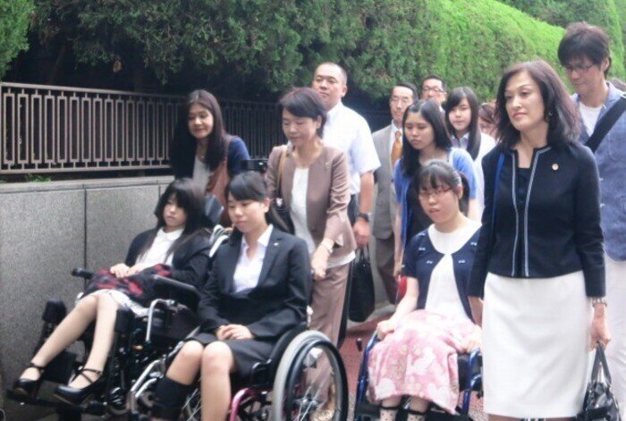 裁判所に向かう原告、家族、弁護士たち(東京地方裁判所前)