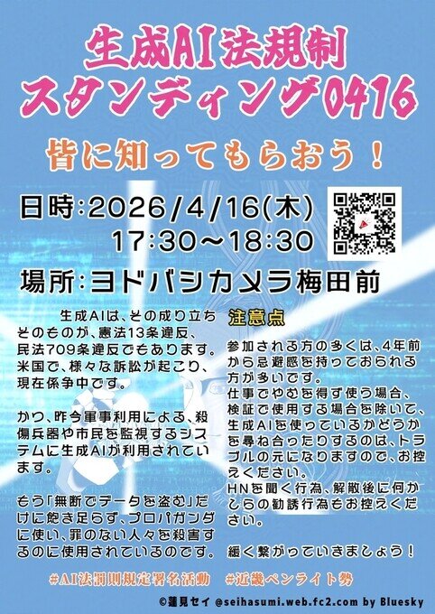 生成AI法規制スタンディング0416開催します!(大阪)