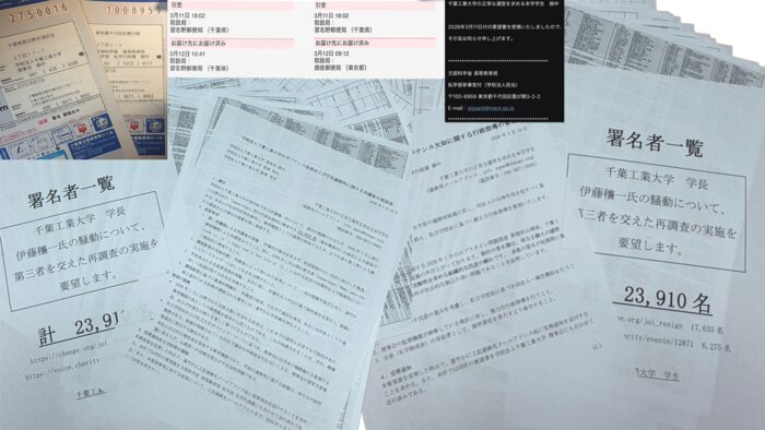 こうした事態の推移を受け、私は「単なる本人による説明」の段階は既に過ぎたと判断いたしました。より客観的かつ厳正な事実究明を求めるため、先日、署名のタイトルおよび千葉工業大学への要望事項を以下の通り更新いたしました。