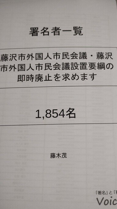 - 「藤沢市外国人市民会議」の即時廃止、および「藤沢市外国人市民会議設置要綱」の撤廃。