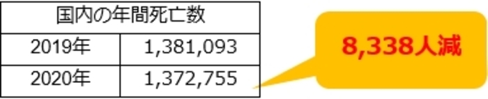 新型コロナが発生した2020年は、前年より8000人程、死亡数が減りました。