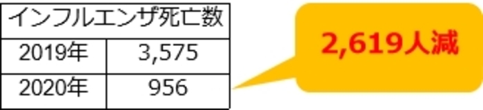 2019年まではインフルエンザの年間死亡数は3,000人~4,000人程でした。