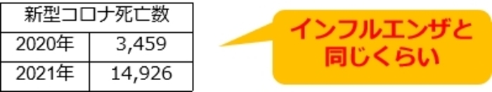 2020年はインフルエンザの死亡数と同じくらい。