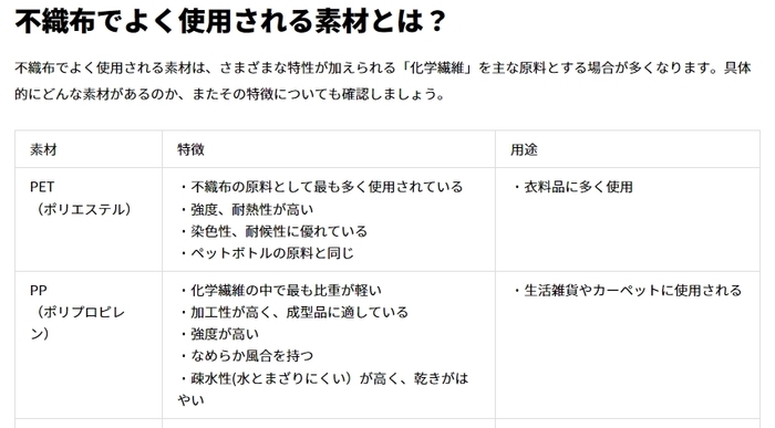 <マルヰ産業株式会社>不織布とはどんな布?原料の種類・素材の特徴を解説