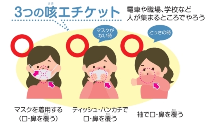 厚生労働省は咳エチケットには3種類あると啓発しています。マスク着用に限定していません。