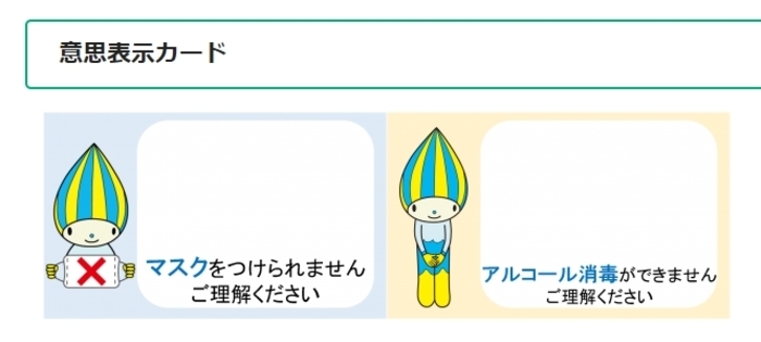 「マスクをつけられませんカード」「アルコール消毒できませんカード」