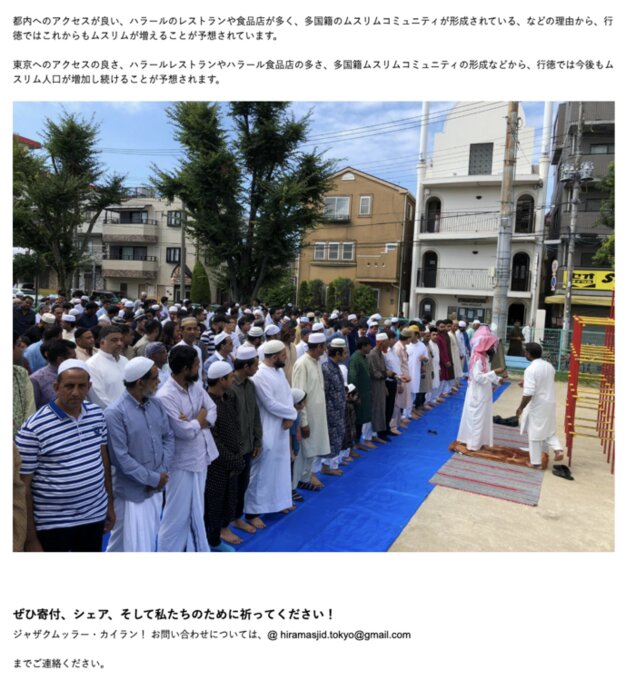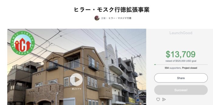 行徳モスクの拡張は、4年前から画策されていたようで、52万ドルを目標に支援を募っているようです。