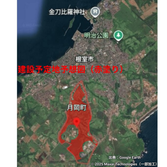 約50万平方メートル(東京ドーム約10個分)規模のメガソーラー建設計画が報じられました(北海道新聞, 2025年10月)。建設予定日は未定。住民説明会は11月下旬の予定。