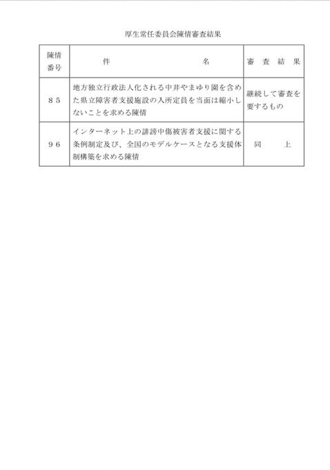 本年2月17日に神奈川県議会へ提出いたしました「誹謗中傷被害者支援条例制定に関する陳情(第96号)」について、