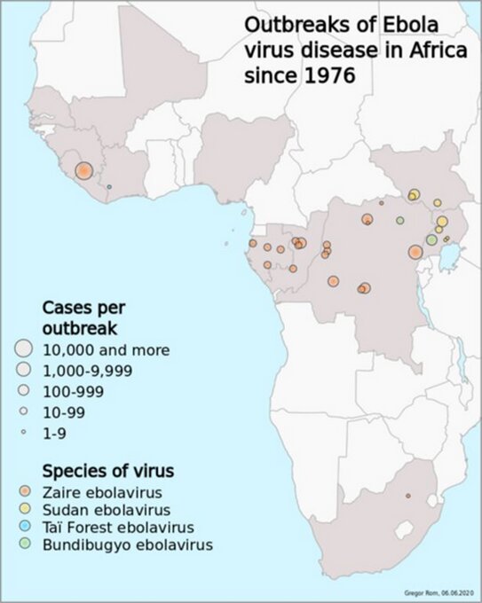 現在の感染ルートは、感染者の体液(血液、分泌物、吐物など)に触れることのみであり、(空気感染しないため)通常はエボラウイルスによってパンデミックが発生する可能性は高くありません。