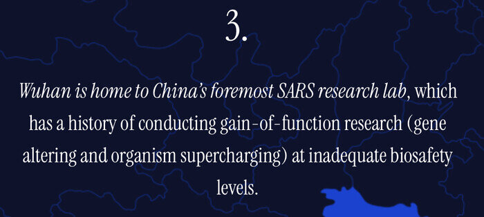 武漢には中国有数のSARS研究所があり、不十分なバイオセーフティレベルで機能獲得研究(遺伝子改変と生物の過給)を実施してきた歴史があります。