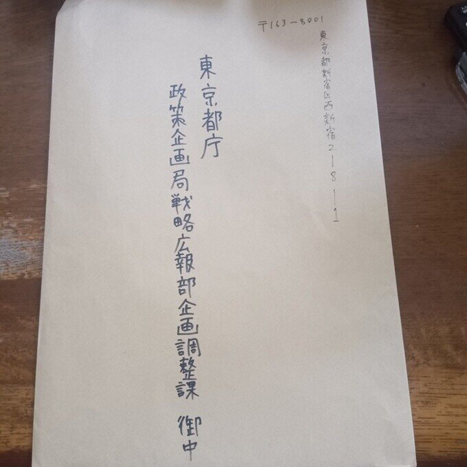 東京都庁への署名郵送完了しました。