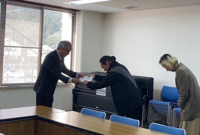 まず、12月2日(火)智頭町役場にて智頭町長へ署名を提出しました。