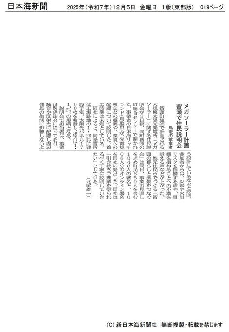 (『日本海新聞』2025年12月5日東部版p.19より。転載許可取得済)