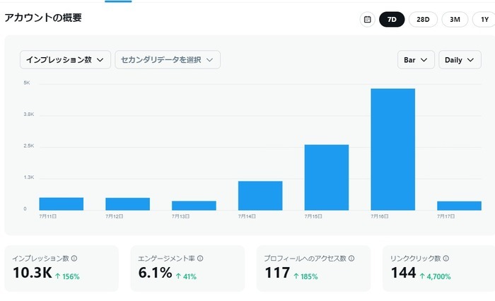 下記Xでのアクション情報の統計(7/17 12時時点)となります。![]()