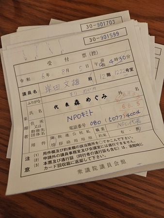 事前に選んだ45名+追加1名-不在7名=39名の国会議員事務所に一枚一枚丁寧に画像のチラシをお手渡ししてきました