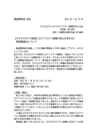 要望書の提出をし、その後に記者クラブにて記者発表を致します。