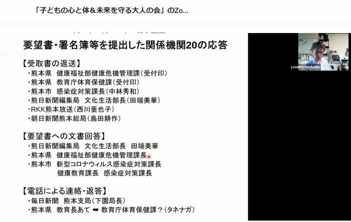 一昨日(8月6日)に、要望書・署名簿の提出とその返答に関する報告会と、今後の継続的な活動に関する検討会を、オンラインZOOM形式で実施しました。