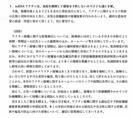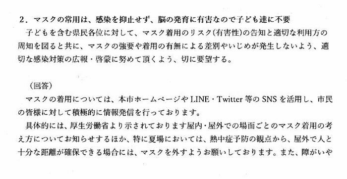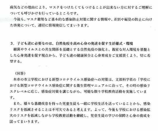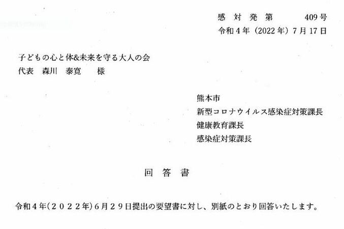 ○「熊本市新型コロナウィルス感染症対策課長・健康教育課長・感染症対策課長」からの回答文書