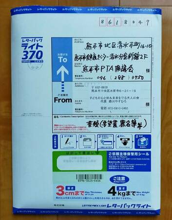 ところが、その翌日お昼過ぎ、「市のPTA協議会の者」と名乗る男性が「こちらが書類を送られたところ(発送元)か?」と森川の自宅を突然訪ねて来られ、抱え持った要望書類一式が入ったレターパックを「これは受け取れない」と突き出されたのには、大いに驚いた。