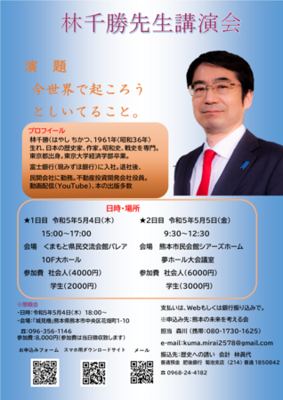 5/4~5/5、林千勝先生の熊本講演が開催されます(臨時連絡)