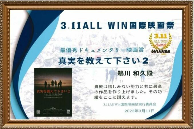 内容は、主催者挨拶~映画「真実を教えて下さい2」の短縮版上映~製作者鵜川代表インタビュー、となっています。