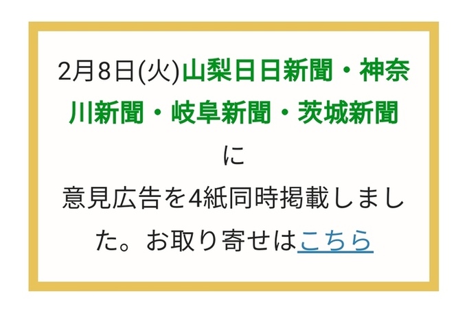 下記は、本日2月8日、新型コロナ関連情報発信センターのサイトに表記された、地方新聞4社への意見広告が同日一斉に掲載された、というご案内です。