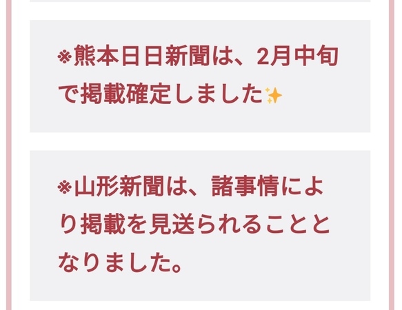 さらに、併せて、遅ればせながら、熊日新聞への掲載が、2月中旬で確定した、というお知らせも掲示されてました。嬉しいビックリです!
