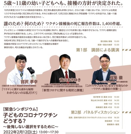 本日12日13:00~ 【緊急シンポジウム】「子どものコロナワクチンどうする?~後悔しない選択をするために~」