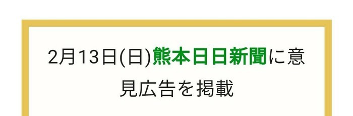 本日2月13日、ついに熊日新聞に意見広告が掲載されます!