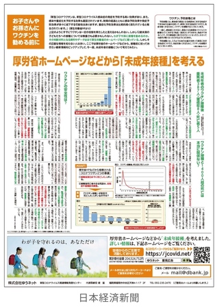 これをどう解釈、理解するか、それは子どものワクチン接種の是非に終わらず、現在の社会情勢と未来をどう見透すか、経済人としての見識と力量が問われる、その踏み絵でもあります。