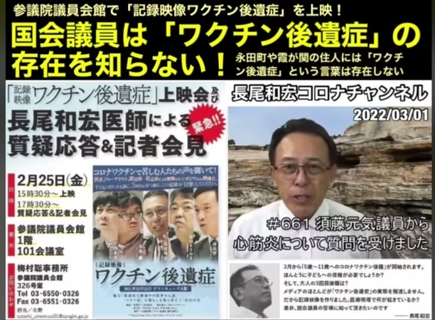 国会議員対象に「ワクチン後遺症」上映会が実施され、上映会後の質疑応答について長尾医師が報告されてます。
