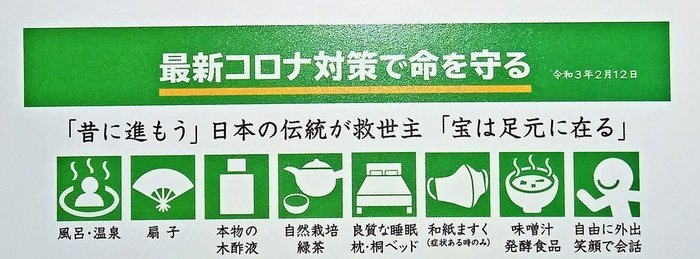 その他の対策としては、新型コロナウイルスのスパイクタンパク質を無効化する緑茶を15分~20分程度の間隔で含み飲みしたり、特に冬場で日照時間が短い場合はビタミンDを補給することが、最低限かつ有効な対策となります。間違っても、部屋を消毒したり、おもちゃを消毒したり、手を消毒したりしてはいけません。」