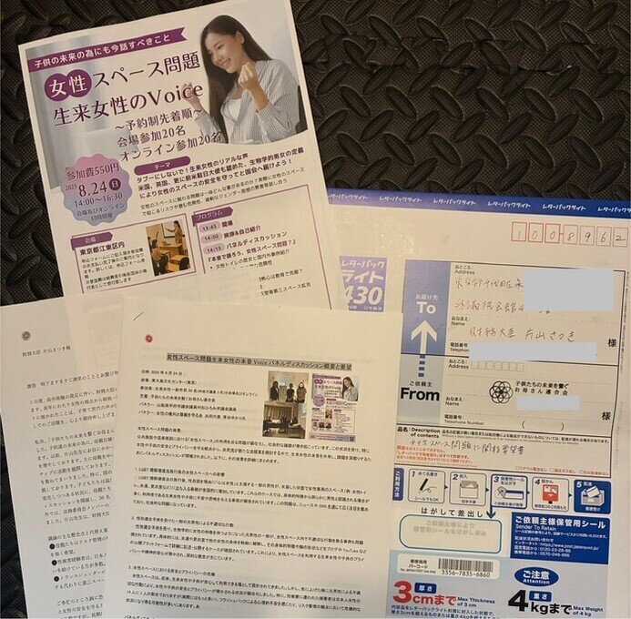 女性スペース問題に付きましては、夏に行った女性スペース問題生来女性Voiceと題しパネルディスカッションを行った模様を文書にし、女性たちの声を含めた要望を国会議員へ伝えてきました。10月末に山梨県甲府市議会議員の村松ひろみ議員のアポイントにて面会することができました。