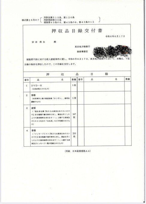 署名提出時の写真は撮影の許可が下りなかったため、押収品目録交付書を受領証明書代わりとして、ここに掲載いたします。