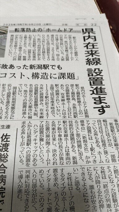 (9月20日付け新潟日報より)