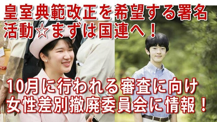 Voiceでのご報告が遅くなりましたが、国連の女性差別撤廃委員会に皇位継承問題がジェンダー平等の法律に反している事、また世論調査では女性天皇を望む声が90%もあること、現在活動している敬宮愛子さまの立太子と皇室典範改正を望む署名活動では多くのご賛同者が集まっていることなどを英文化しジュネーブの国連女性差別撤廃委員会に提出をしました。